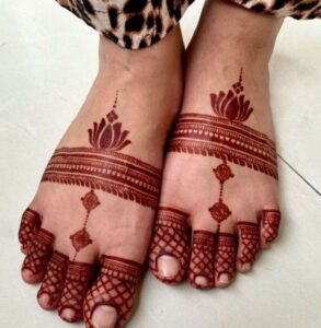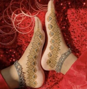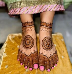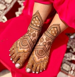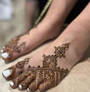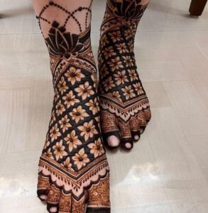 One of the latest trends in leg mehndi is the use of negative space, where the skin itself becomes part of the artwork. This approach not only accentuates the details of the mehndi but also creates a more modern, minimalist look.